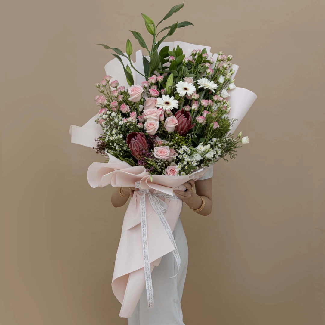 باقة رائعة من الورود الزهرية النضرة ترمز الورود الزهرية إلى الامتنان والإعجاب, صُممت باقة الزهور هذه بكل حب وعناية، وستجلب بالتأكيد البسمة على وجه الشخص الذي تحبه، مهما كانت المناسبة.
