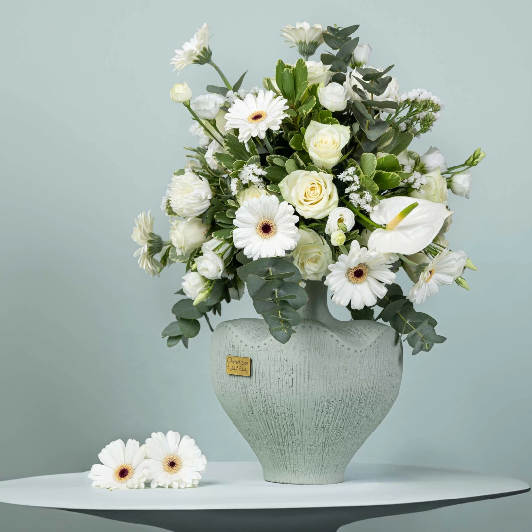 تحفة هي مزهرية رائعة من الورود الطازجة ترمز إلى الامتنان والإعجاب. تم تصميم إناء الزهور هذا بكل حب وعناية بتصميم حصري