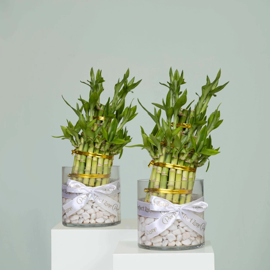 نبتة البامبو او ساق البامبو نبتة داخلية لا تحتاج للكثير من العناية حيث تنمو مباشرة بالماء .. لطيفة سهلة بالعناية وتضيف جمال للمكان