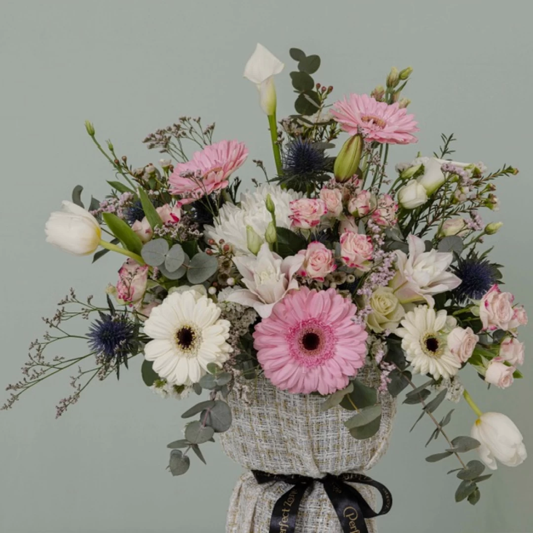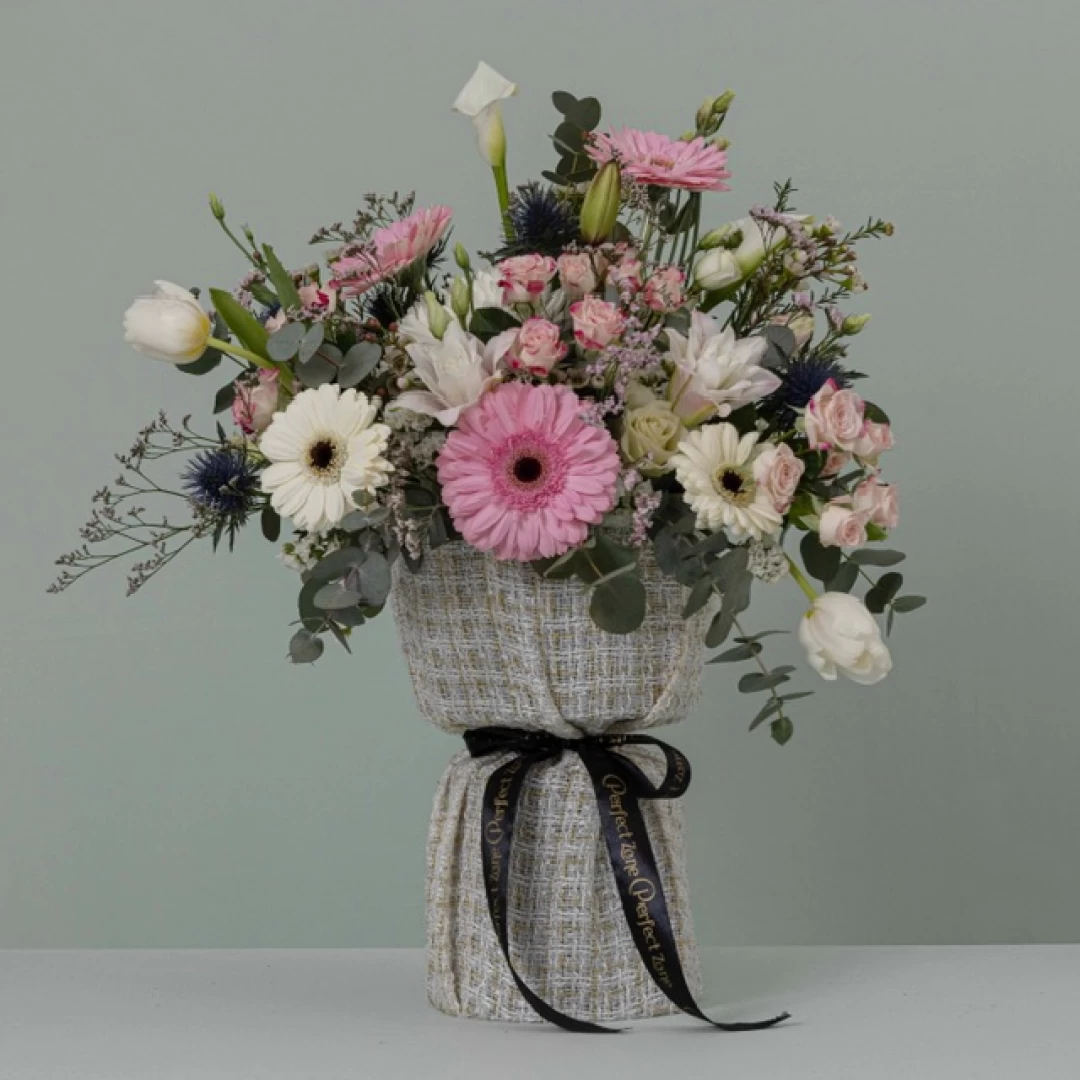 تم تنسيق باقة (نسـيم ) لشتوية أنيقة تُشعرك بالدفء ،مع مزيج من الورود الهولندية الفاخرة لتناسب أيامك الشتوية السعيدة