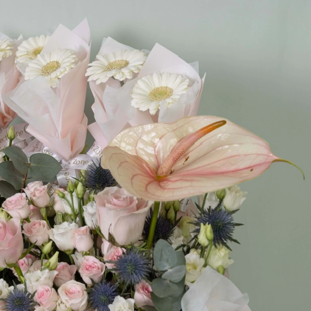 باقة جميلة تشكل مزيجًا مذهلاً وأنيقًا من الزهور الهولندية ،بالاضافه اليه 7 زهور من الجربيرا توزيعات