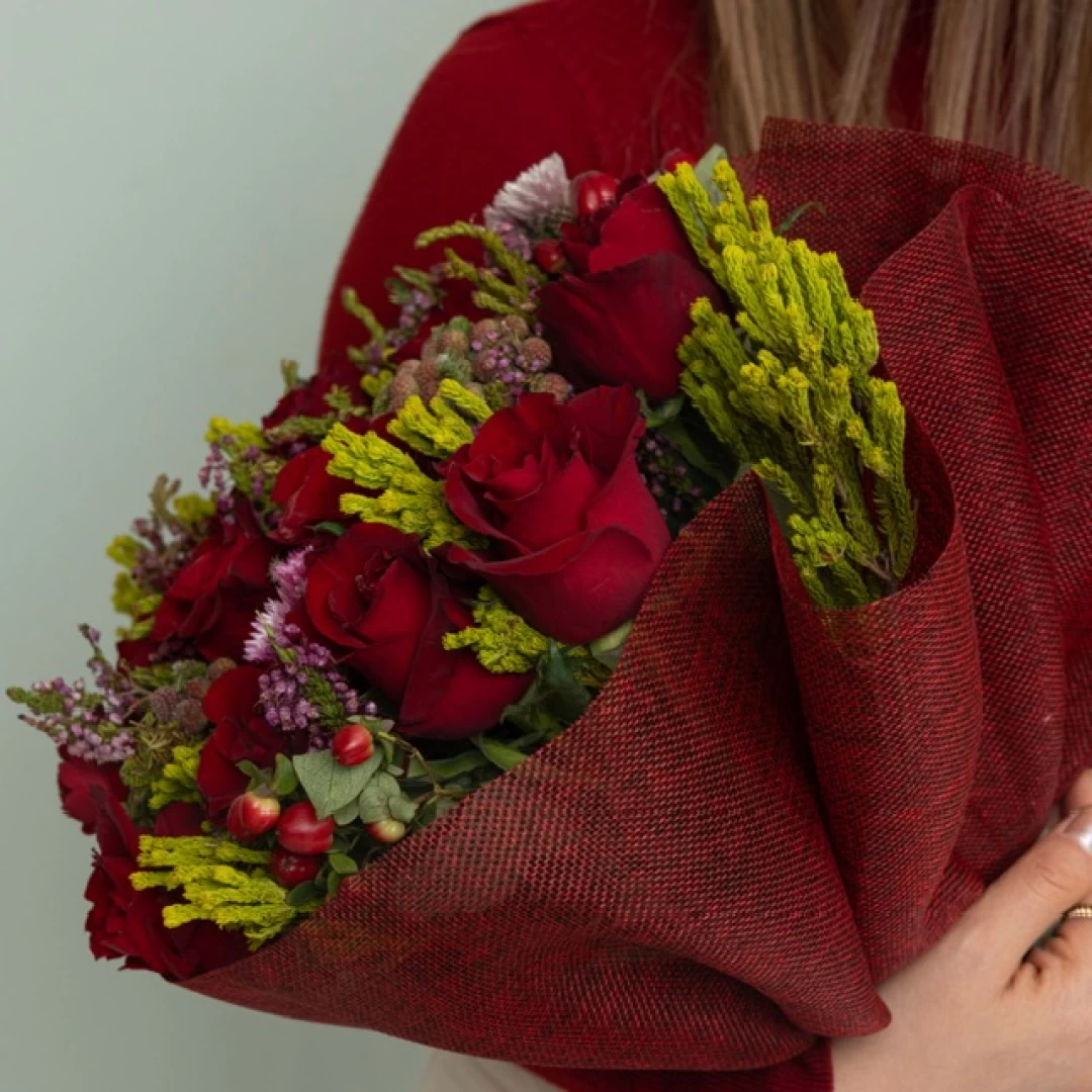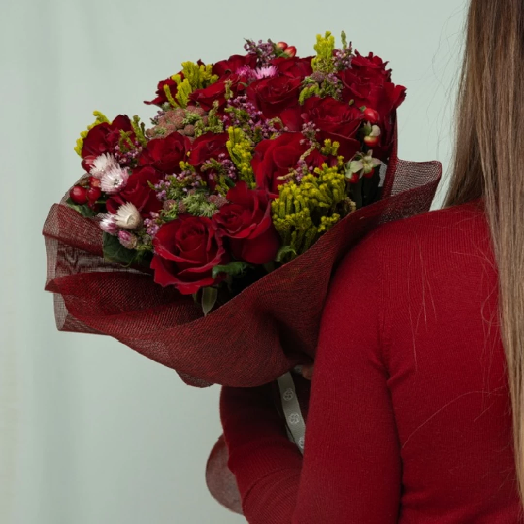 باقة فـداء تحتوي على زهور البيبي جوري والجوري الاحمر تشكل مزيجًا مذهلاً وأنيقًا.