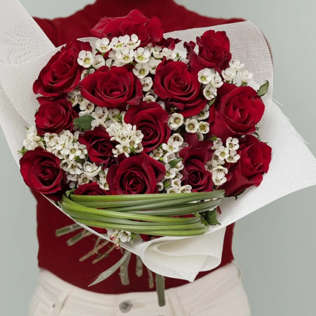 باقة ضــي تحتوي على زهور البيبي جوري والجوري الاحمر تشكل مزيجًا مذهلاً وأنيقًا.