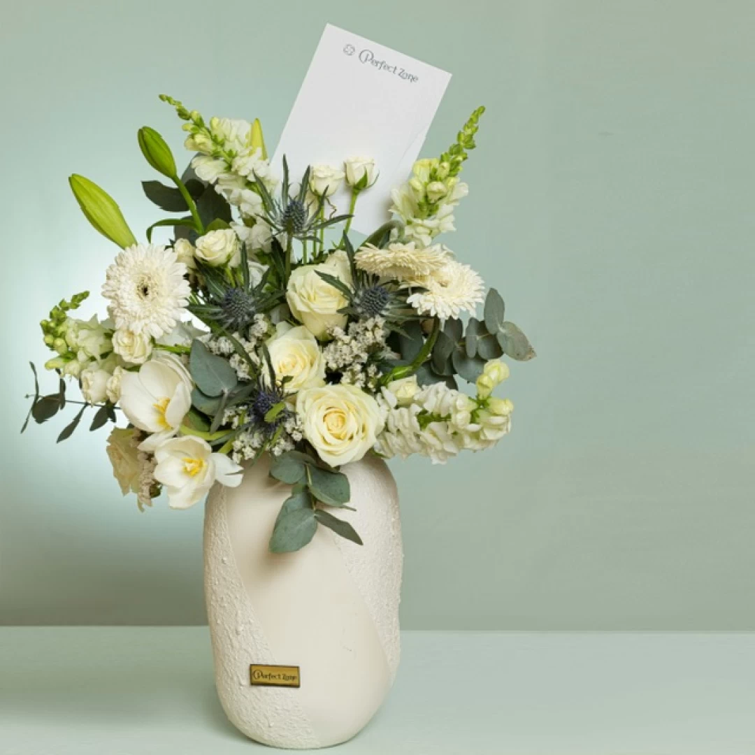 فازة ( الراقيه ) نُسقت بمزيج من الورود الهولندية الفاخرة لتليق بجميع احتفالاتكم السعيدة