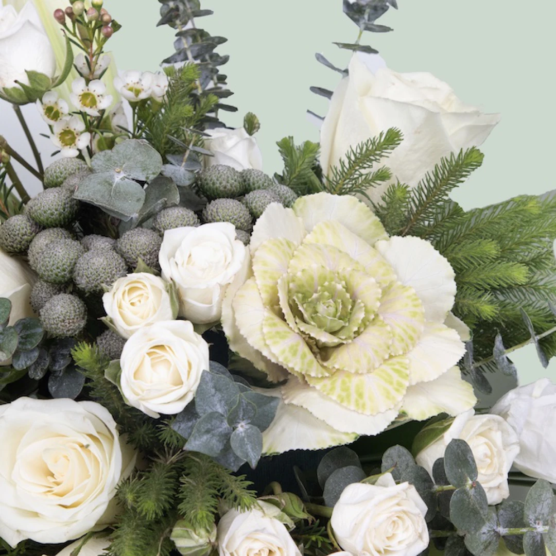 يحتوي على مزيج من الزهور البيضاء