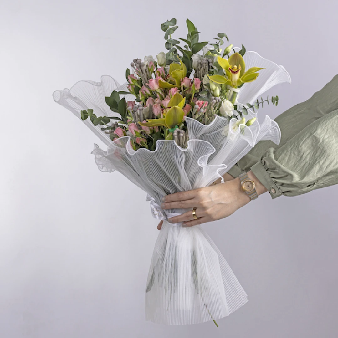 تحتوي على مزيج زهور السفاري و بيبي روز و السمبيدوم الهولندي